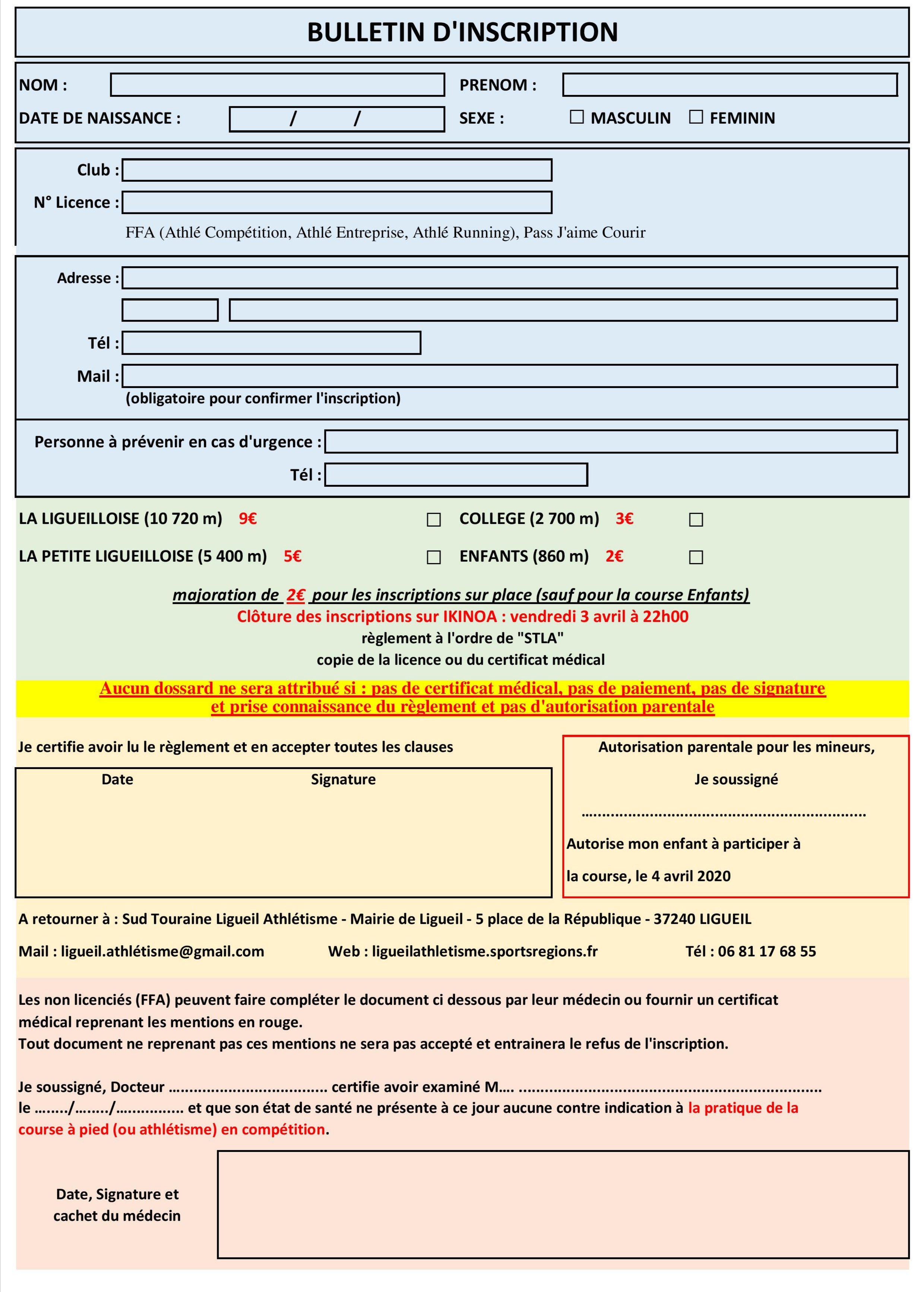 Bulletin d'inscription la ligueilloise